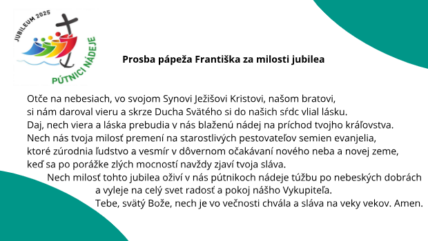 Modlitba na Jubilejný rok 2025Kategória: Top správyAko pútnici nádeje, prinášajme kresťanskú nádej tomuto svetu.Blahoslavená Zdenka, pútnička kresťanskej nádeje oroduj za nás ! 05. 02. 2025