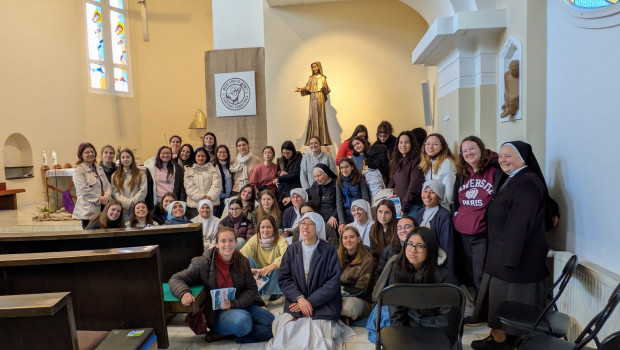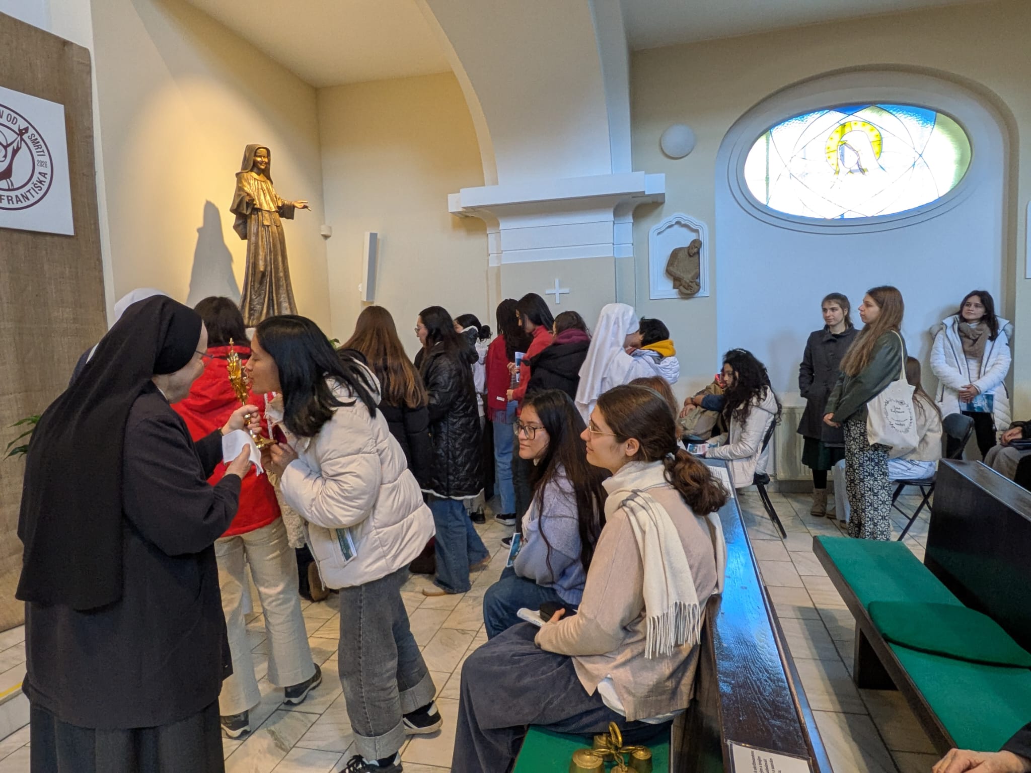 V sobotu 14. marca 2026 v dopoludňajších hodinách prišli na púť k blahoslavenej Zdenke Schelingovej do Podunajských Biskupíc dievčatá zo Španielska sprevádzané sestrami z Kongregácie domu Matky. S veľkou túžbou v srdci si uctili relikvie bl. Zdenky a zotrvali v tichej i spevom vyjadrenej modlitbe. Ich radosť, nadšenie a dôvera boli silným povzbudením pre všetkých účastníkov duchovnej obnovy, ktorí v týchto dňoch hľadali duchovné posilnenie pri bl. Zdenke. Blahoslavená Zdenka, prihováraj sa za tieto mladé dievčatá, ktoré s veľkou vierou a otvoreným srdcom prišli k tebe a vypros im milosť vytrvalosti, radosti a pokoja.